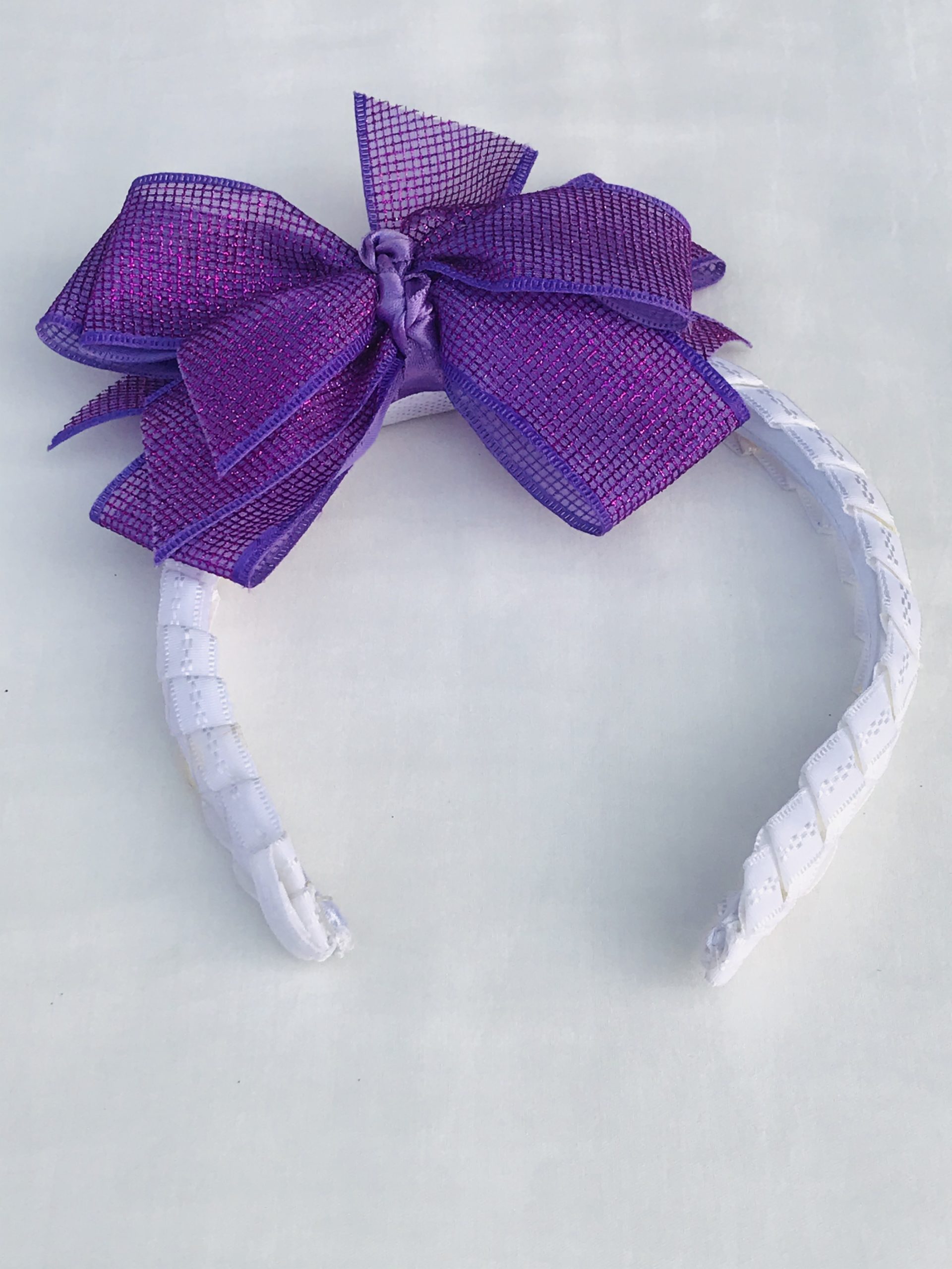 + Free ShippingMade on Fine Quality Plastic Hairband and decorated with Satin Ribbon and Sparkle Net.