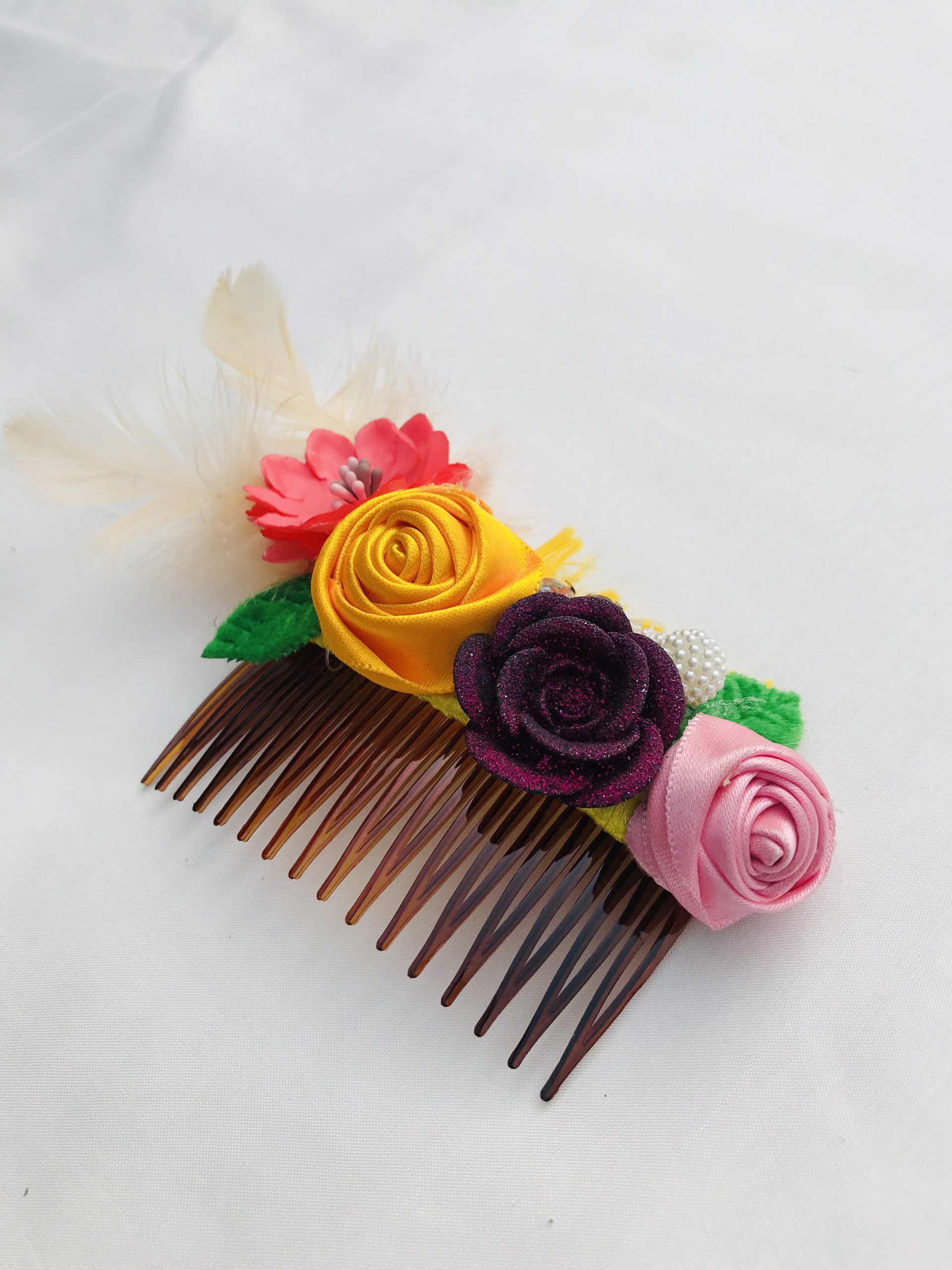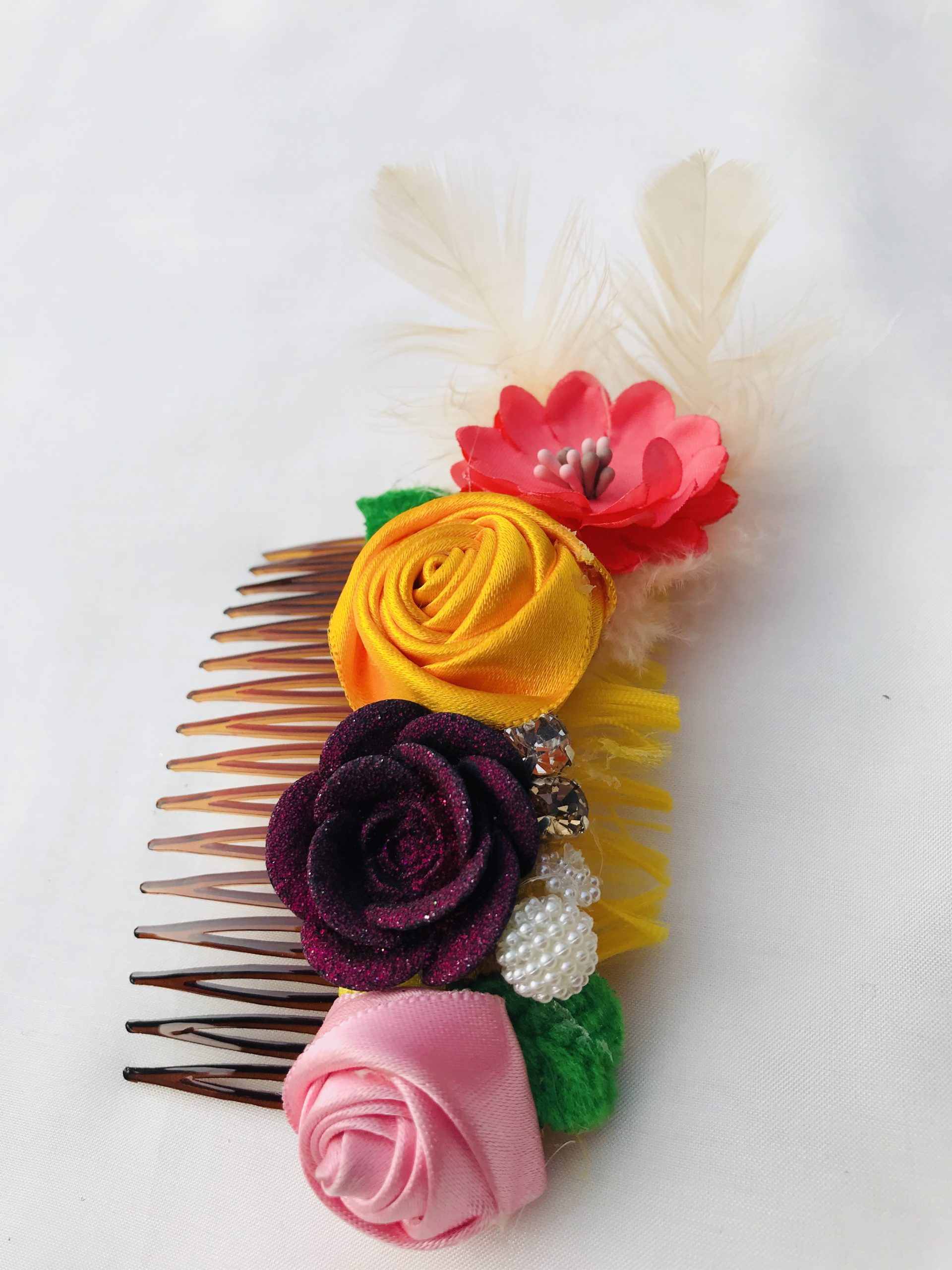 + Free ShippingThis Product Features Satin Ribbons with Stones and a feather and a comb.