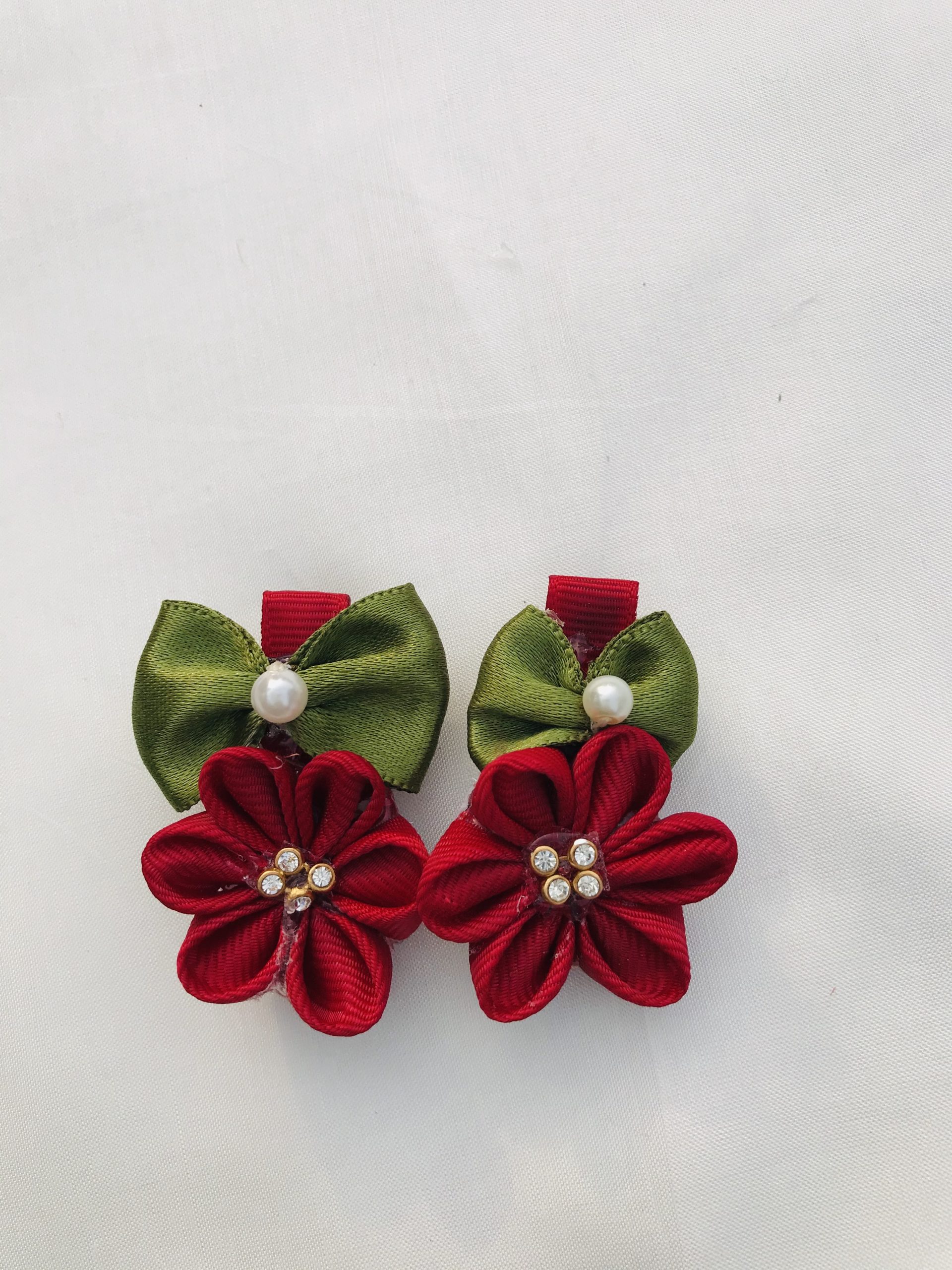 This Product Features Pink, Green and Yellow Grosgrain Ribbons. Pearl and 4 stones