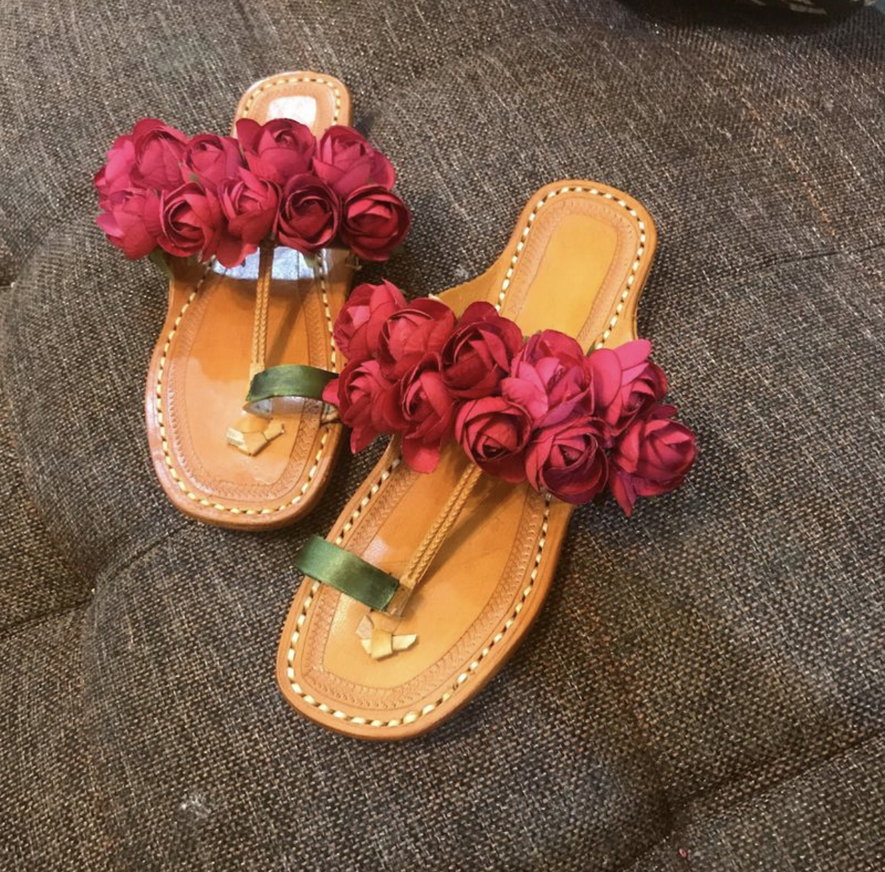This Kolhapuri footwear is handcrafted with imported flowers.