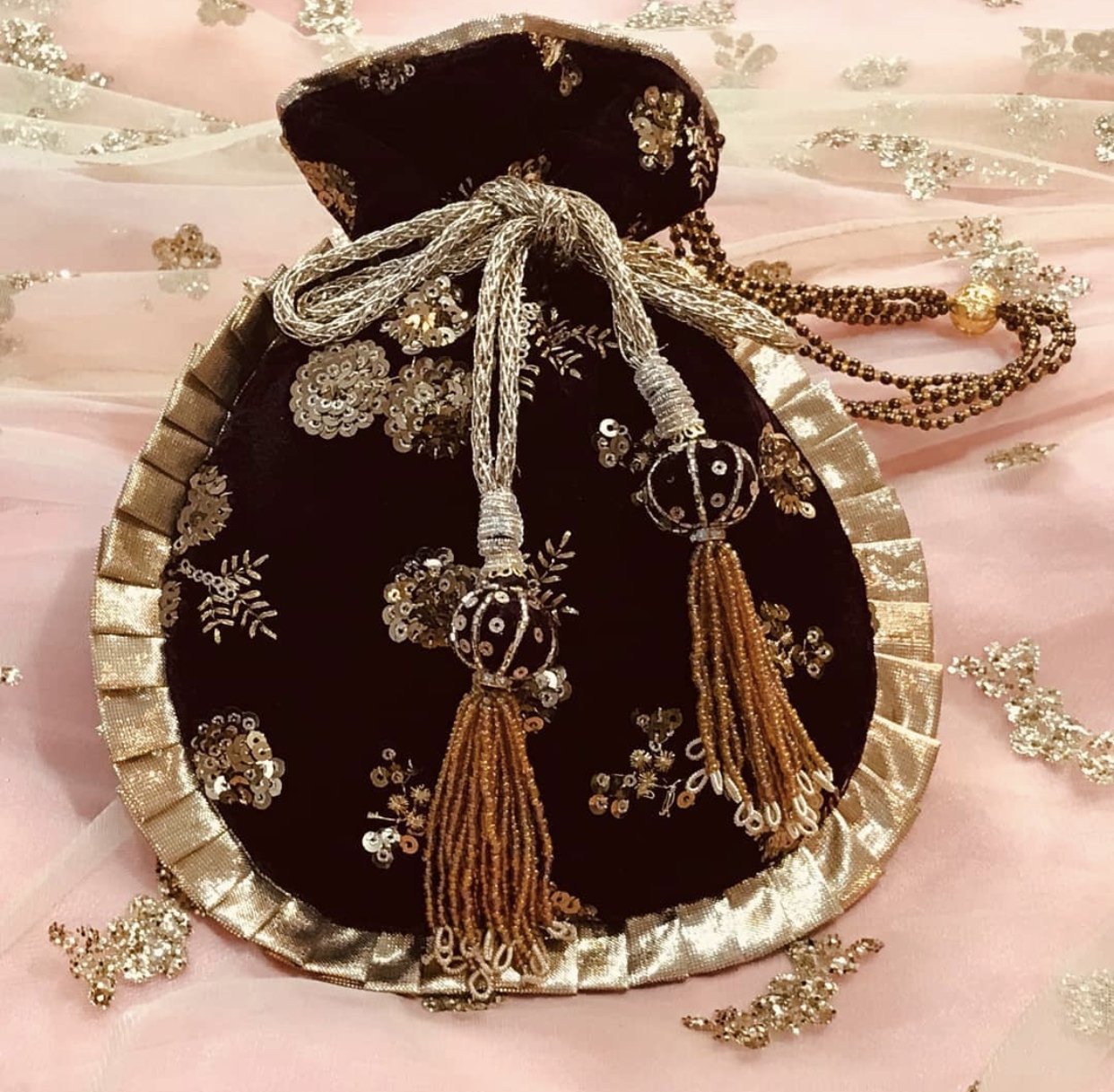 Beautiful velvet potli with polysilk lining and hand made tassel for ethnic lovers. Pair it with your beautiful traditional attire to complete your look